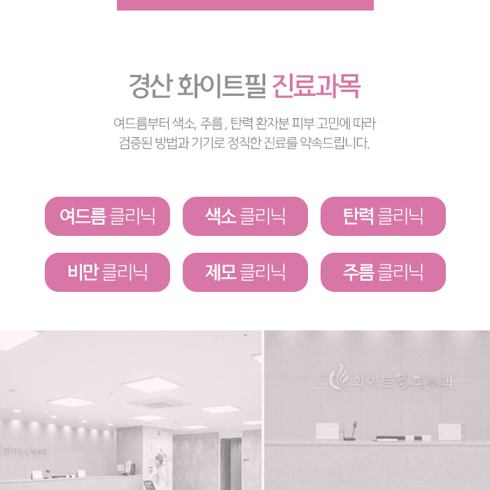 필러 시술 수 원활한 회복을 위해 사우나, 격한 운동, 음주 및 흡연은 삼가하는 것이 좋습니다. 경산화이트필 의원에서는 다년간의 경험과 노하우를 바탕으로 영천 필러 시술을 진행합니다. 그리고 과잉진료 없이 환자분에게 꼭 필요한 시술만 하며 검증된 재료와 방법으로 정직한 진료를 약속드립니다.